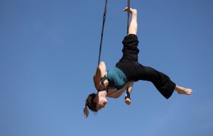 Strapaten und Luftakrobatik: „Der Workshop richtet sich an Anfänger*innen, Fortgeschrittene und Profis, die an der luftakrobatischen Disziplin interessiert sind. Am Anfang werden wir uns mit den Grundlagen beschäftigen und wie ich diese gut unterrichten kann. Je nach Kenntnisstand der Teilnehmer*innen werden wir auch an fortgeschrittenen Tricks trainieren.“